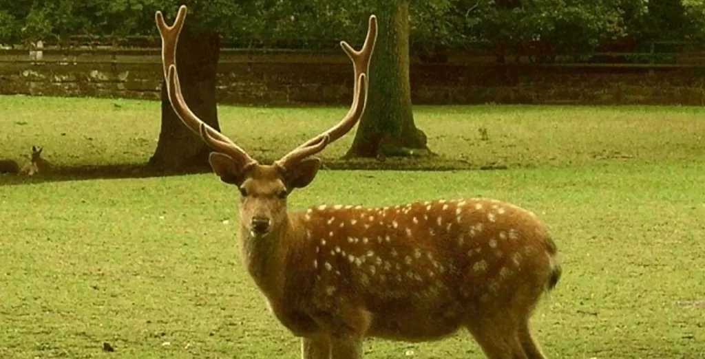 Sika deer are not highly social animals, and male deer often live alone. They are most active during the early morning and dusk. Their habitat and range change with the seasons. In the spring, they are often found on partially shaded slopes. During the summer and autumn, they migrate to the edge of forests on shaded slopes. In winter, they prefer warmer sunny slopes. Their diet primarily consists of grass, fruits, herbs, tree buds, leaves, and agricultural crops.