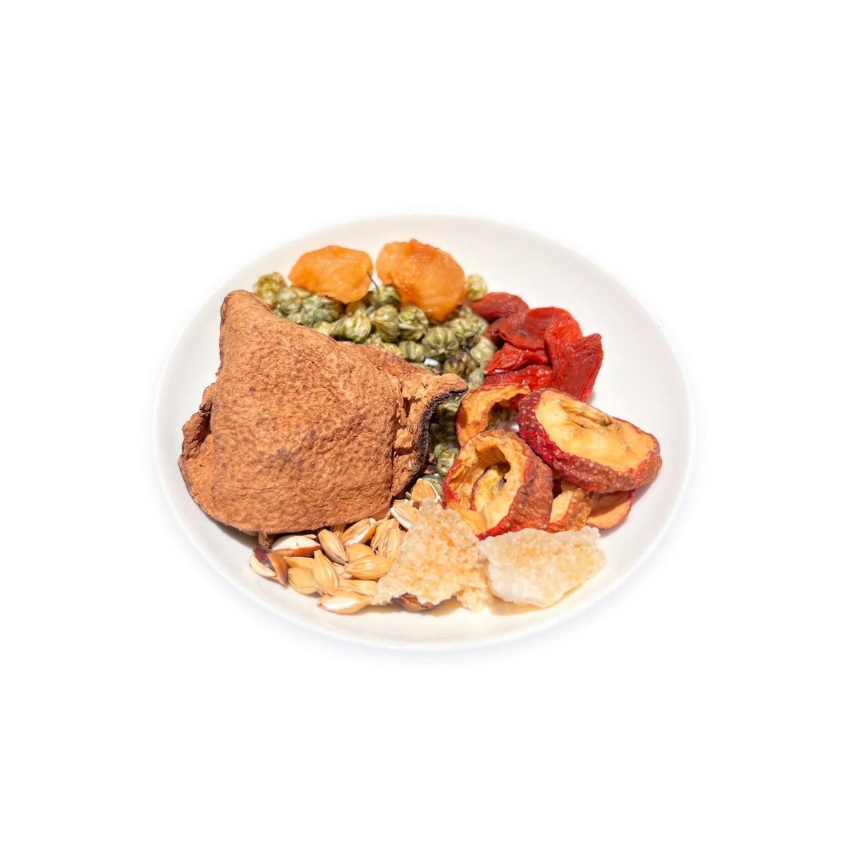 Origins|Macau, S.A.R. Ingredients|Pearl Bud Chrysantheum,Aged Mandarin Orange Peel,Hawthorn,Malt,Goji Berry,Longan,Honey Sugar Benefits|Strengthen spleen, eliminate dampness and regulate qi Specification|8pcs/ bottle