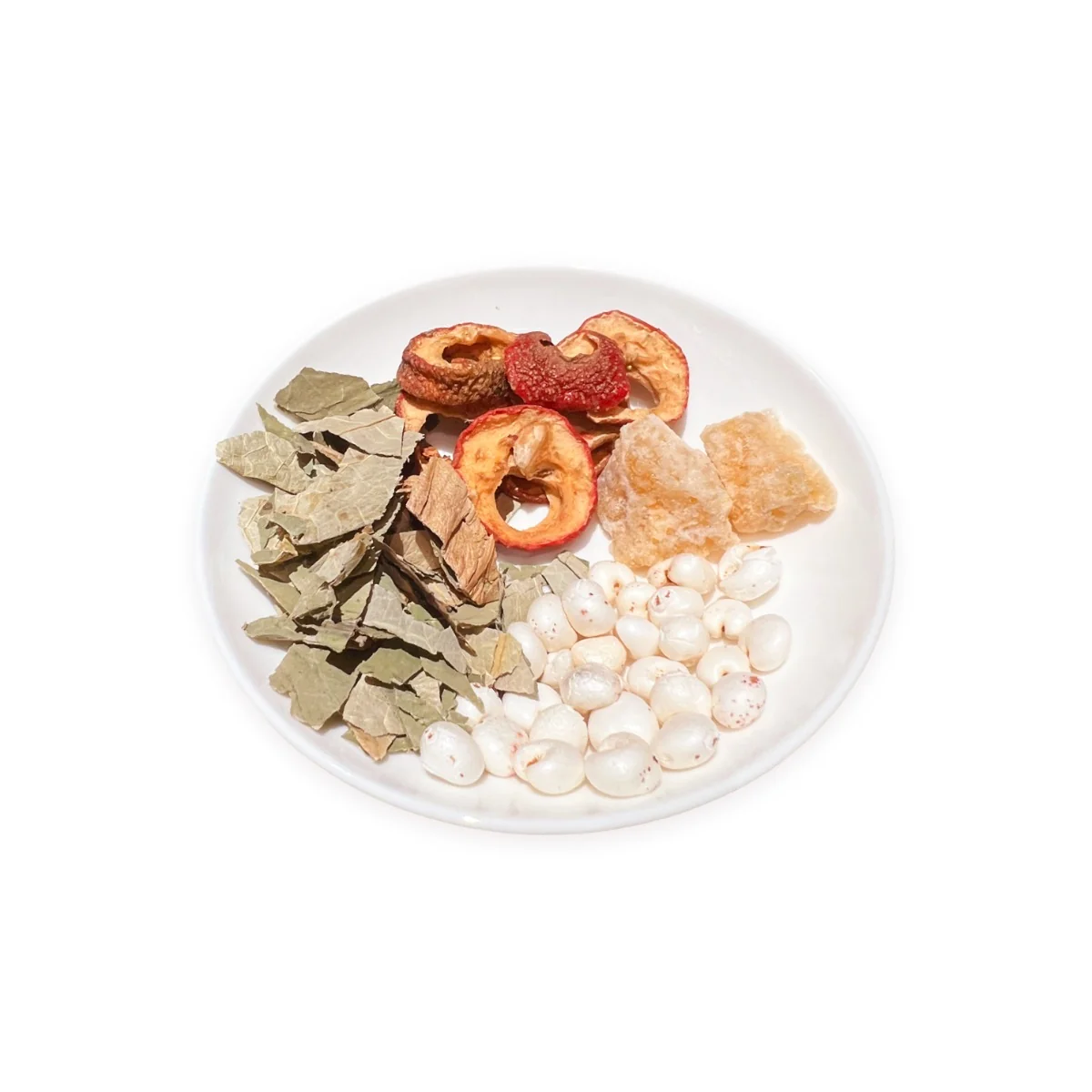 Our tea is beneficial for alleviating heaviness, eliminating phlegm and dampness, and promoting increased water intake. It aids in digestion, Qi circulation, blood flow, and hydration. With a delicate lotus leaf fragrance, complemented by hawthorn and cooked barley, and a touch of sweetness from honey, it offers a harmonious blend of flavor, aroma, and therapeutic effects. This tea is particularly suitable for individuals who have a sedentary lifestyle and are prone to water retention.