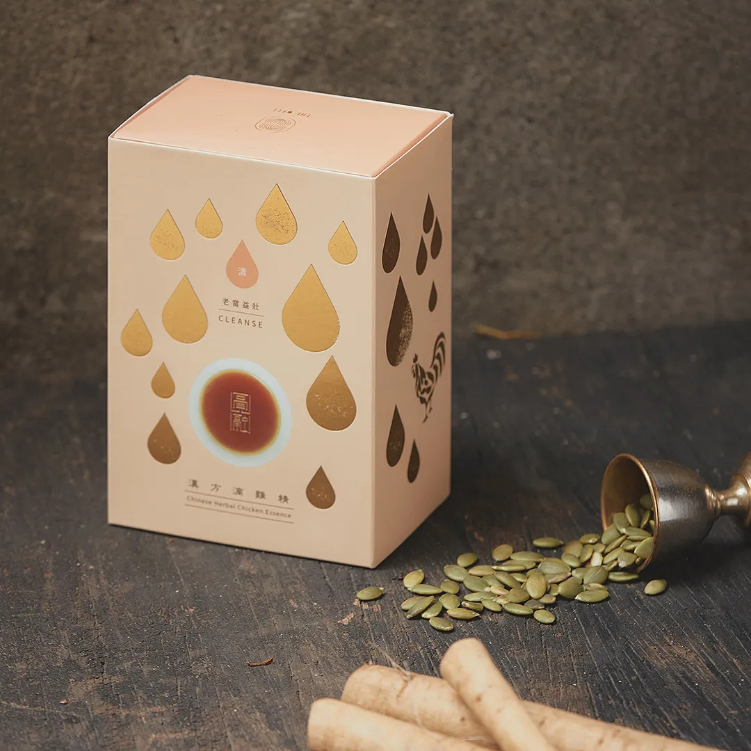 Herbal Chicken Essence “Cleanse” is specifically designed for the elderly. It is made from nourishing silkie chicken combined with extracts of golden burdock and pumpkin seeds, which help promote metabolic functions, regulate blood pressure, cholesterol, and blood sugar levels. The black chickens used in this essence are freely raised in the mountains of Hualien, Taiwan, without the use of hormones or additives. They undergo thorough cleaning and are meticulously drip-sealed at high temperatures for 15 hours. This process transforms the essence into small molecules that are easily absorbed by the body, resulting in a smooth texture and rich chicken flavor. The product has been tested and certified for safety by German and Taiwanese inspection authorities, ensuring it is safe for consumption.