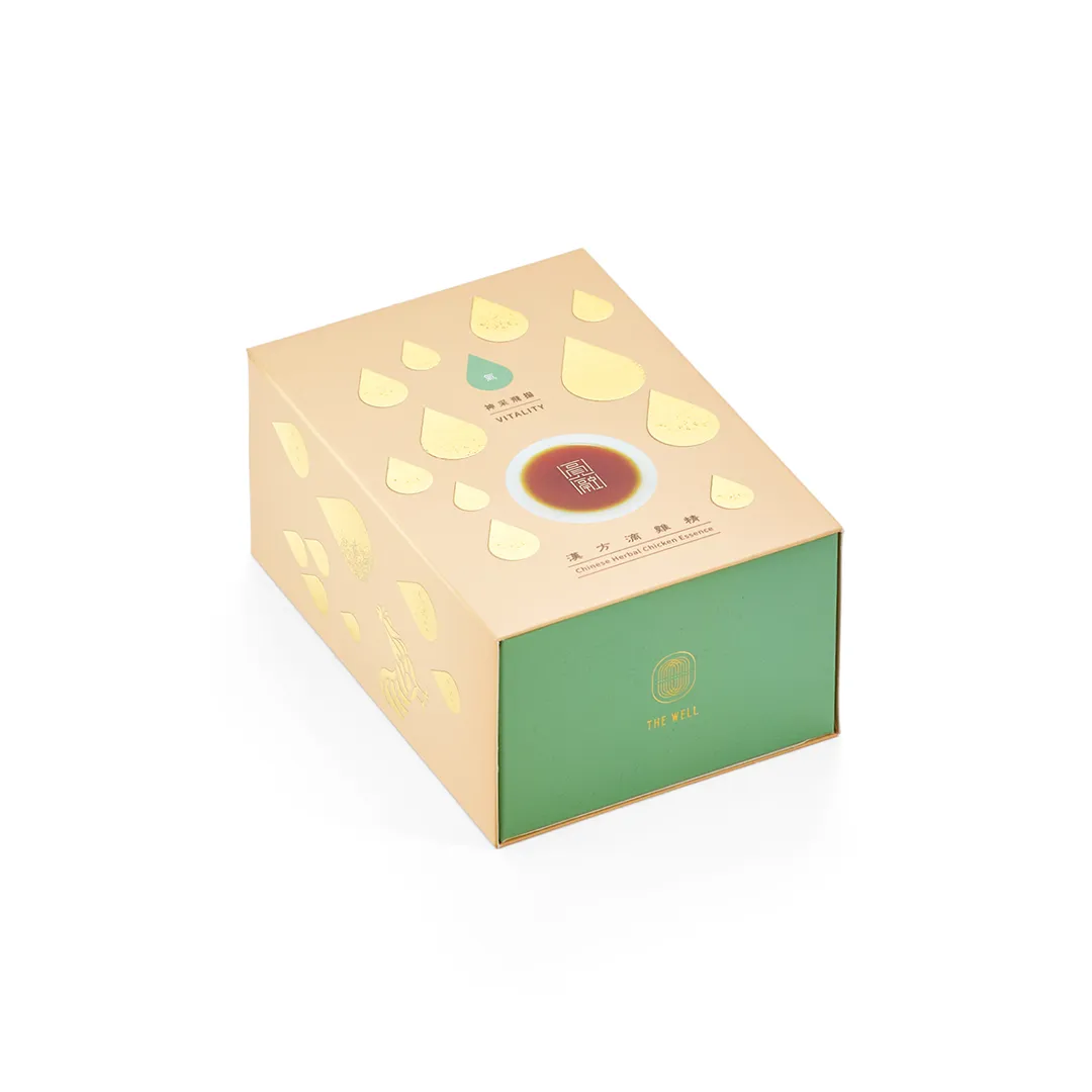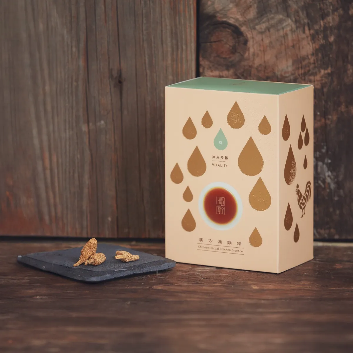 Herbal Chicken Essence “Vitality” is made from free-range fighting chickens that naturally roam the mountains. These chickens have ample exercise, which helps them develop their own immune system. The chicken essence is hormone-free and free from additives. It undergoes thorough cleaning and is meticulously prepared at high temperatures for 15 hours. This process extracts the essence and transforms it into a form that is easily absorbed by the body, providing nourishment and promoting health. The essence has a refreshing taste and a rich chicken flavor. It is further enhanced with American ginseng, which is rich in ginsenosides and helps replenish Qi and boost mental alertness. The product has undergone testing and is deemed safe for consumption by German and Taiwanese inspection authorities.